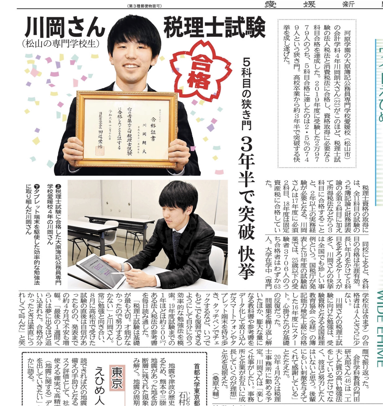 【会計学科】愛媛新聞に掲載されました♪